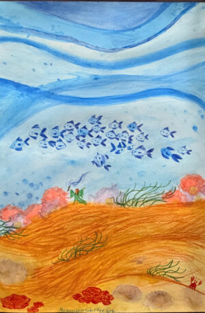 To the right is my self-portrait, recently featured at the Edmonds Art Festival. Somewhere in the waves, I’m exploring the ocean I love-can you find me?